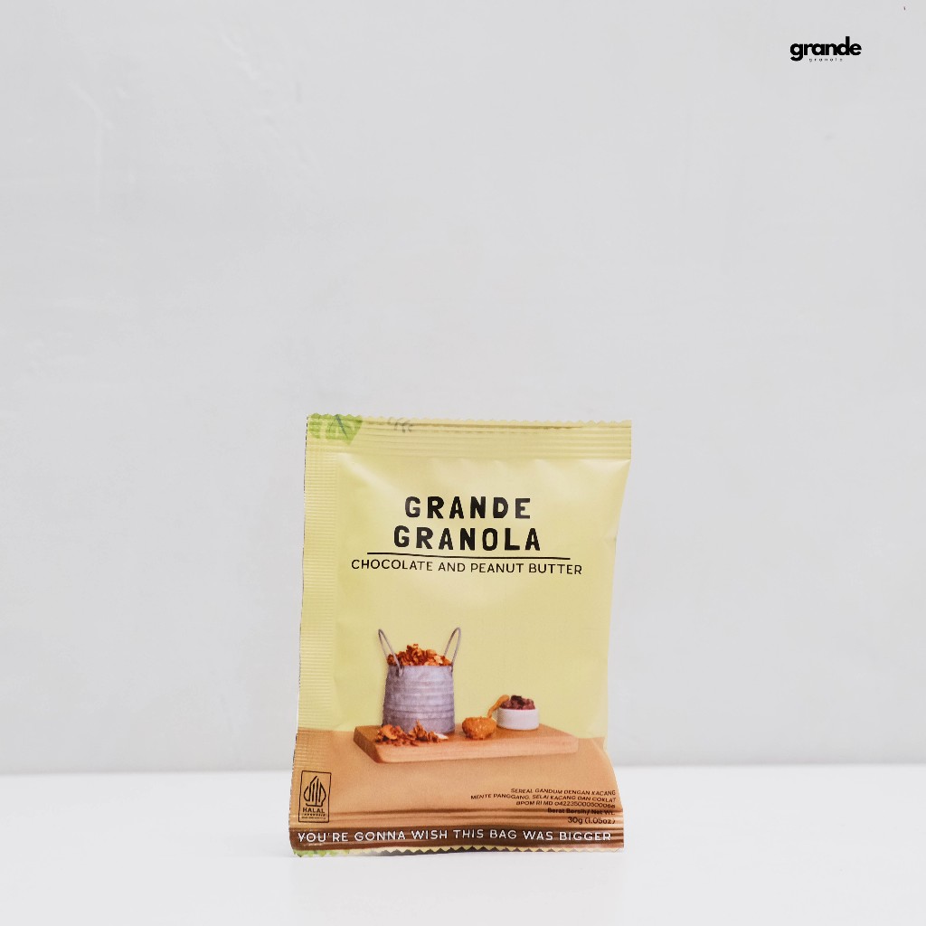 Grande Granola Chocolate and Peanut Butter is a rich blend of oats, roasted cashews, creamy peanut butter, and dark chocolate—balanced with coconut oil, natural coconut sugar, and a touch of sea salt. It’s perfect with yogurt, milk, or smoothie bowls, and just as satisfying straight from the bag as a snack. With a crunchy texture and a sweet-salty flavor combo, it’s a comforting treat for any time of day. To keep it fresh, store at room temperature in an airtight container, away from direct sunlight.